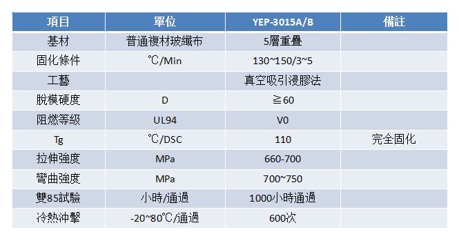 快速固(gù)化雙組(zǔ)份體系(xì):YEP-3015A/B=100/20(phr)